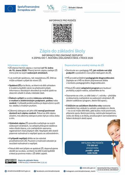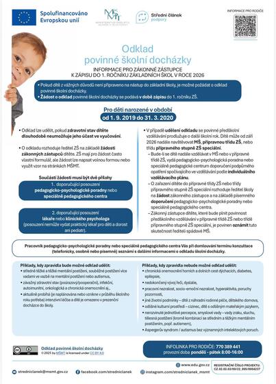 https://msmt.gov.cz/informace-k-zapisu-do-1-trid-a-k-odkladum-skolni-dochazky Rodiče se mohou informovat i telefonicky na čísle 412 386 261