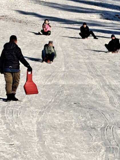 Začátkem ledna si žáci 2. RS za krásného slunečního dne oblékli teplé oblečení, rukavice a čepice, připravili boby, ježdíky a hurá na svah. Užili si spoustu legrace.