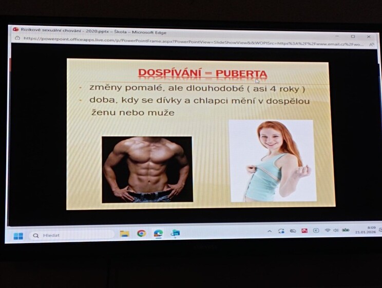 Ve středu 21.1. 2026 nás navštívila paní Čapíková se kterou děti besedovali o rizikovém sexuálním chování.