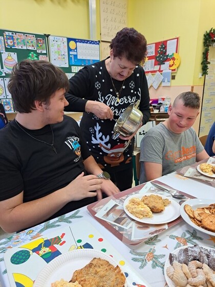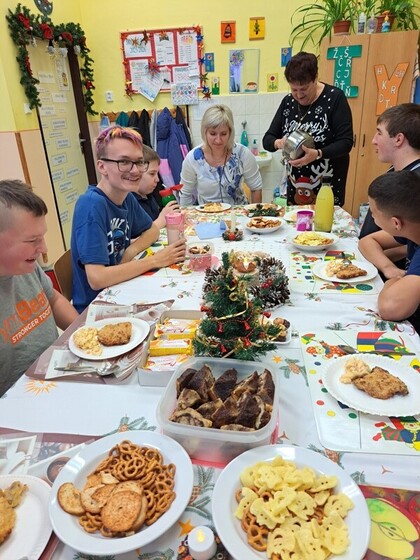 Společně jsme si připomněli tradice zdobení stromečku, pečení cukroví, zpívání koled..... Abychom si den pořádně užili, připravili jsme si společnou hostinu. Na slavnostním stole nechyběl bramborový salát s řízkem a cukroví.