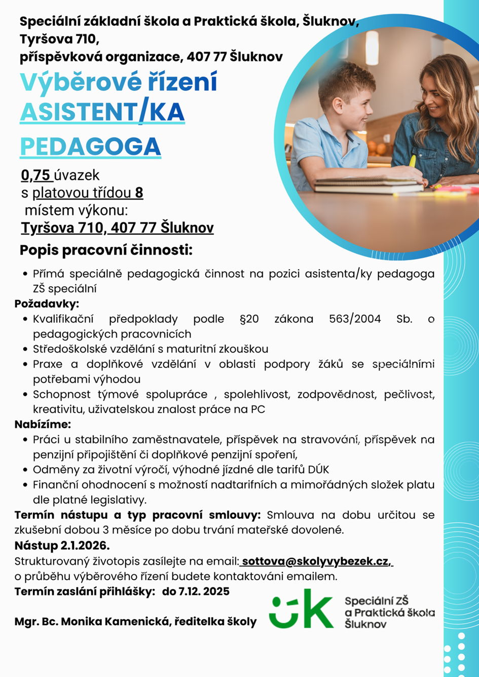> Výběrové řízení ASISTENT/KA PEDAGOGA